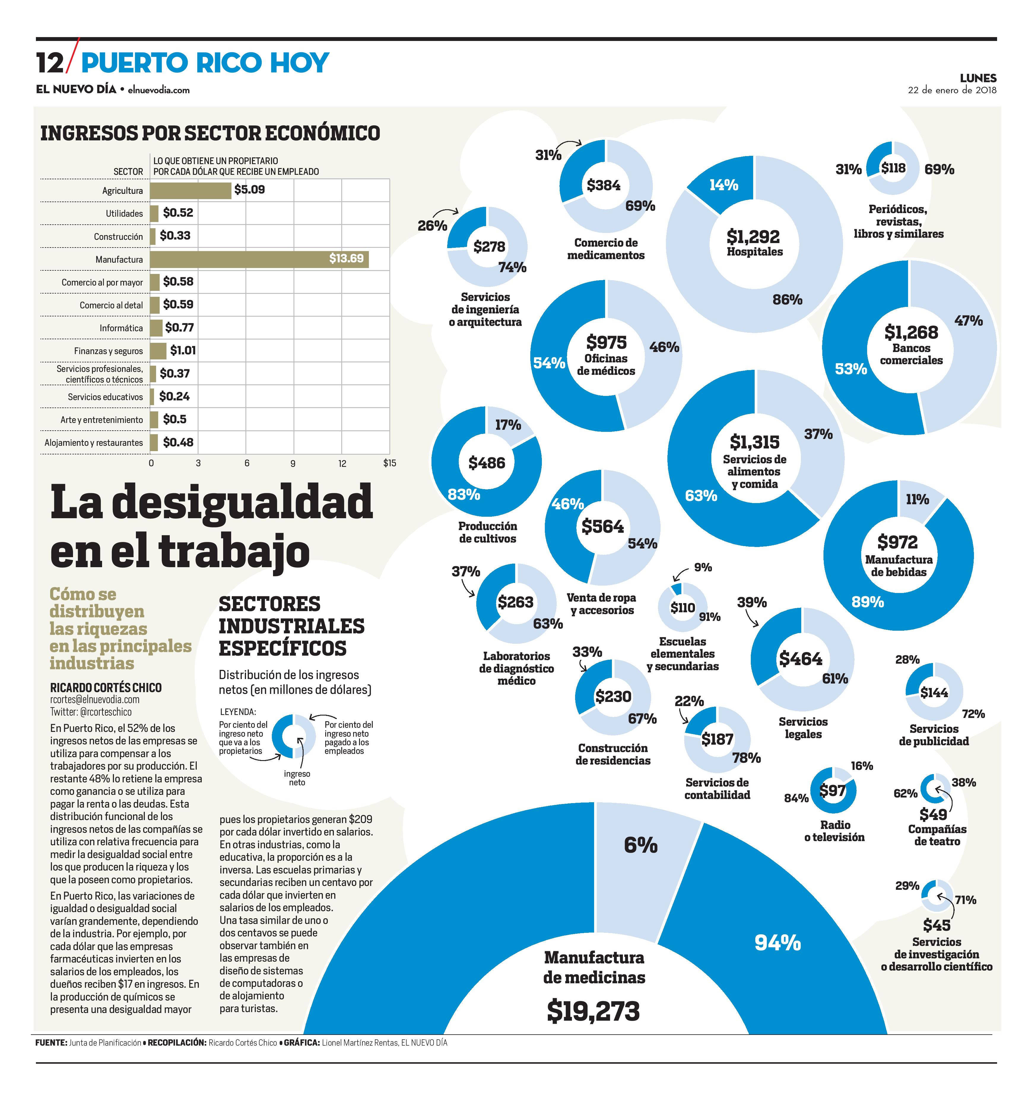 La sección Puerto Rico en Datos fue la primera dedicada al de periodismo de datos en El Nuevo Día. Su primera edición fue el 6 de abril de 2017 y publicó hasta el 21 de enero de 2019. Se dejó de publicar en una reorganización de fuentes editoriales.